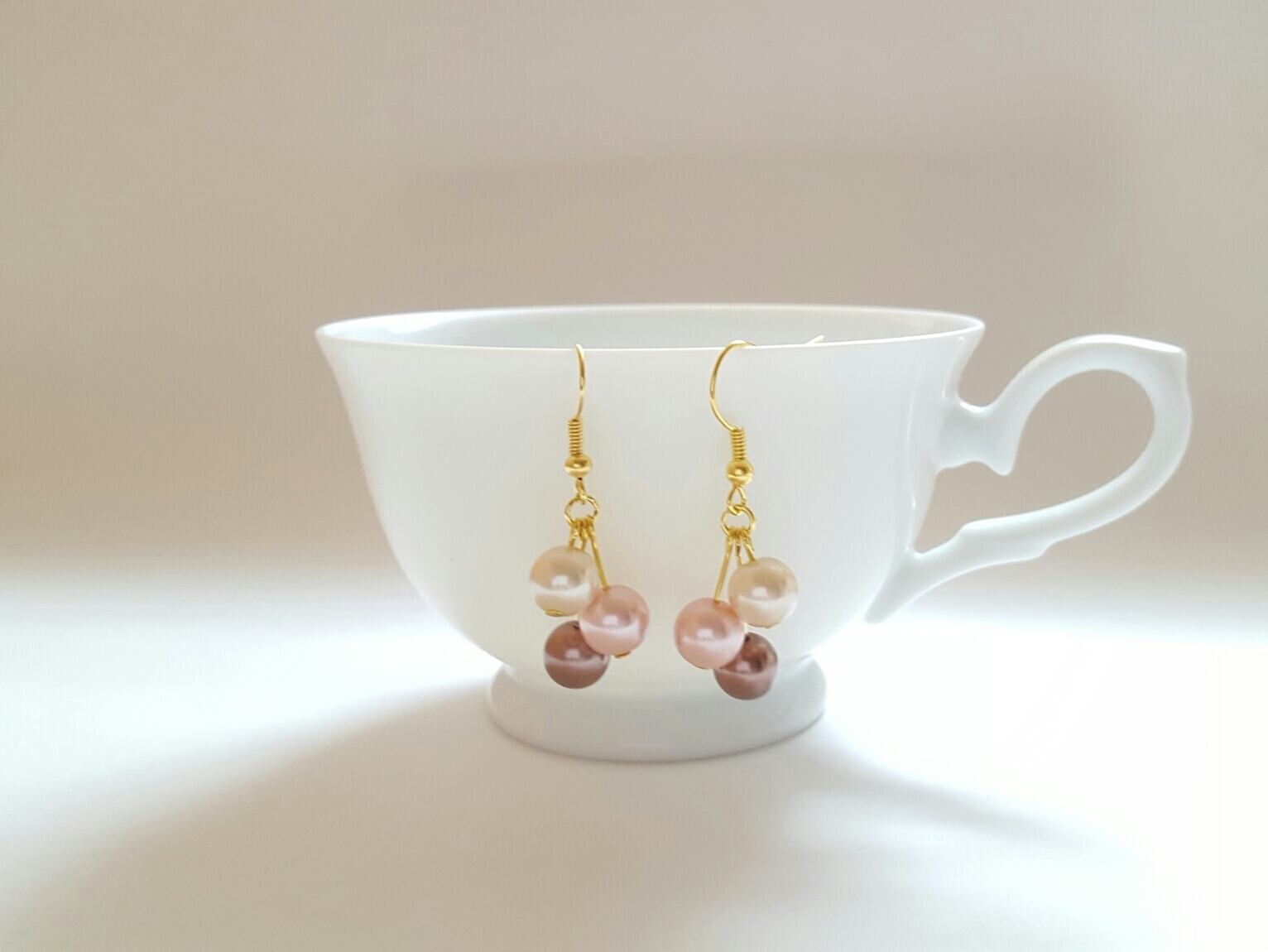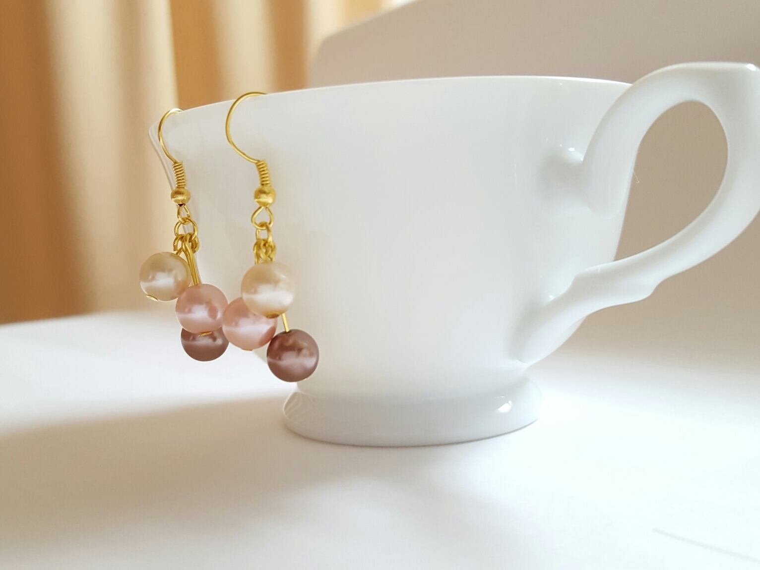 秋色系のカラーパールがゆらゆらゆれるピアスです。