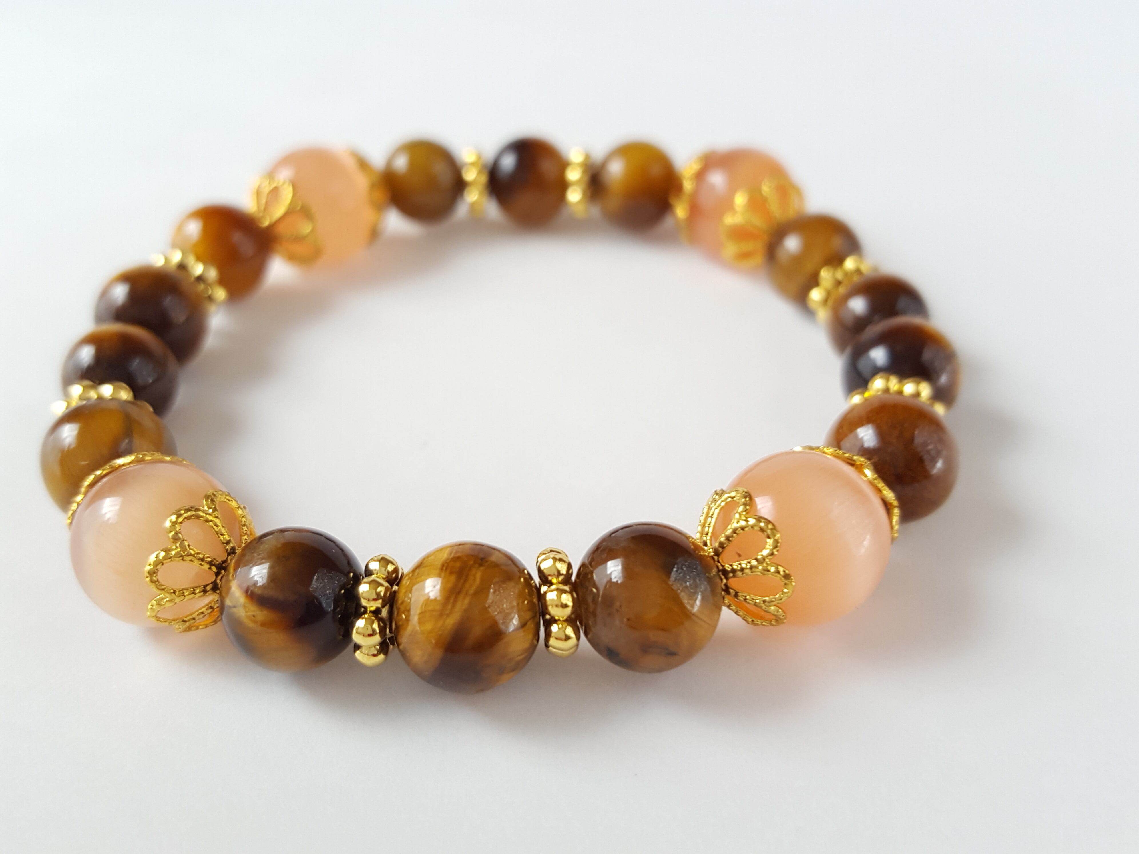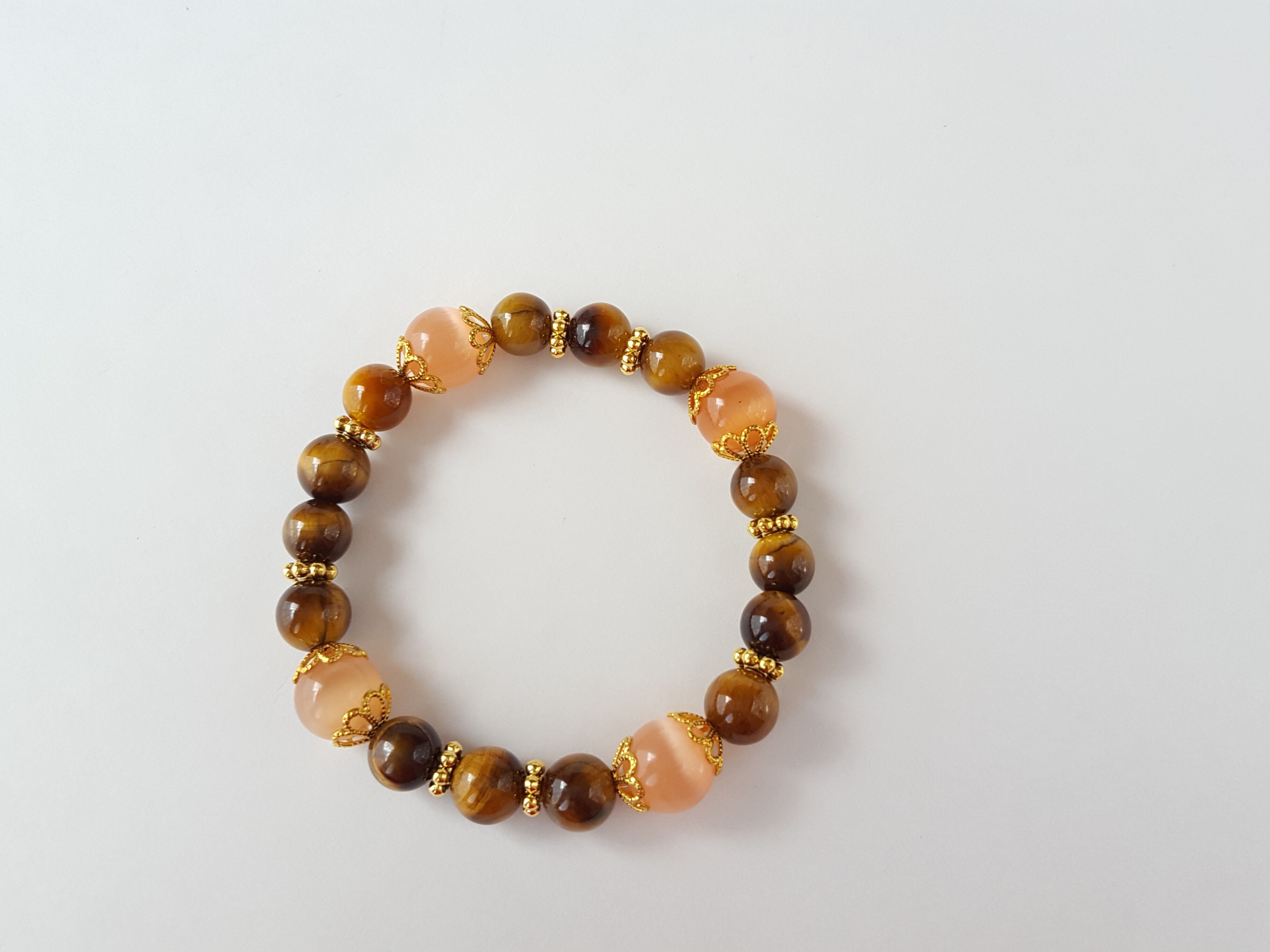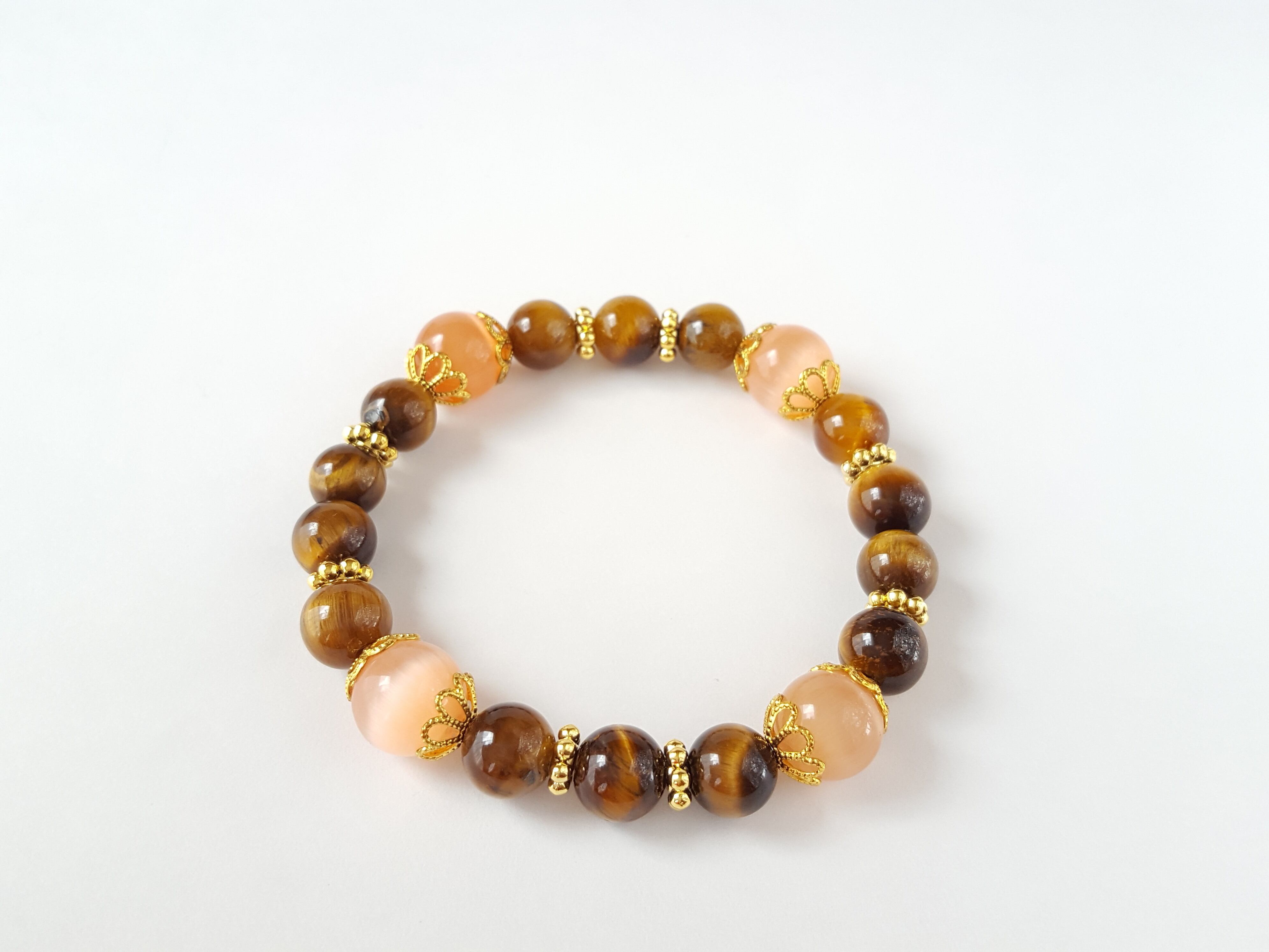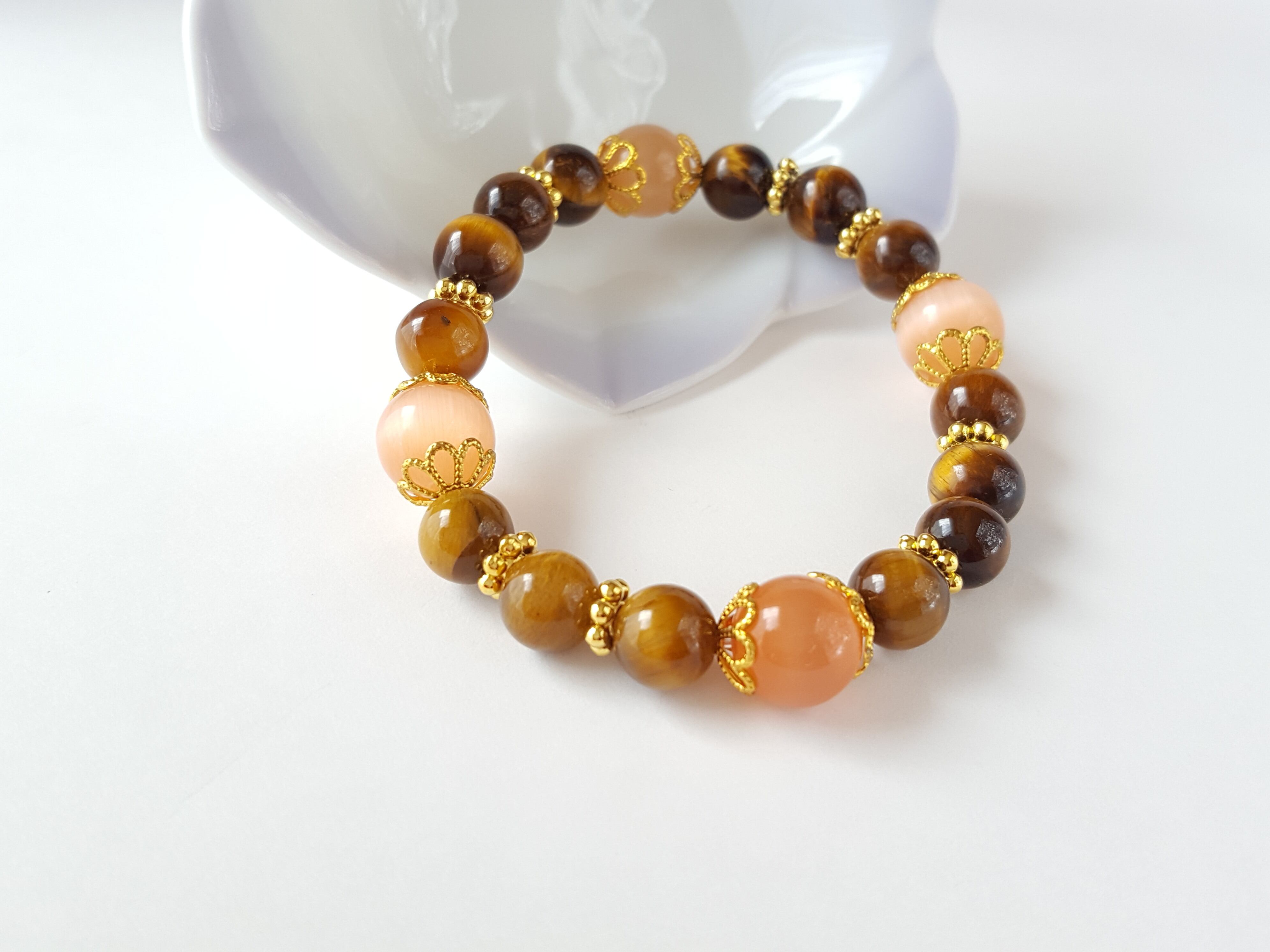 キャッツアイとタイガーアイの秋色ブレスレットです。